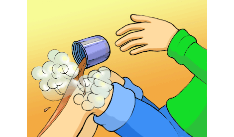 - Термический ожог возникает при воздействии высокой температуры. Например, ожог кипятком, паром, раскаленными предметами или пламенем.