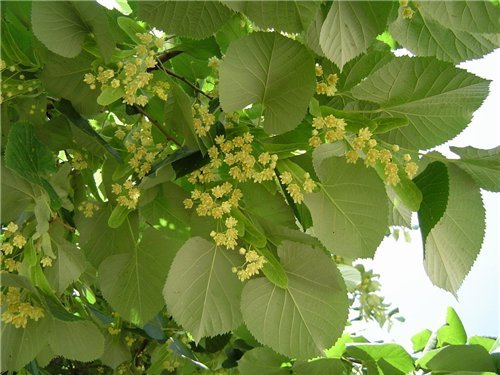 Липа и ее лечебные свойстваЛипа сердцелистная - дерево, относящееся к семейству липовых. Высота его достигает от тридцати до сорока метров. Стволы по диаметру доходят до восьмидесяти сантиметров. Кора имеет темный цвет, встречается и черная. Цветы липы небольшие, можно сказать даже мелкие, имеет желтовато-белый, а иногда и кремово-желтый. Листья распускаются в мае, а цветение начинается в конце июня по июль, в общей сложности цветение длится около двух недель. Во время цветения воздух наполняется сладким медовым запахом. Липовый цвет нужно собирать тогда, когда основная часть цветков распускается, а малая находится еще в виде бутонов. Собирать нужно небольшими веточками с обильными цветками. Затем цветки липы сушат в проветриваемом и затемненном помещении, температура которого должна быть около 25-30 градусов. Сушить на солнце категорически запрещается. Растет липа в широколистных лесах. В основном встречаются в лесопосадках, в придорожных посадках и в парках. В парках липа считается прекрасным декоративным деревом.